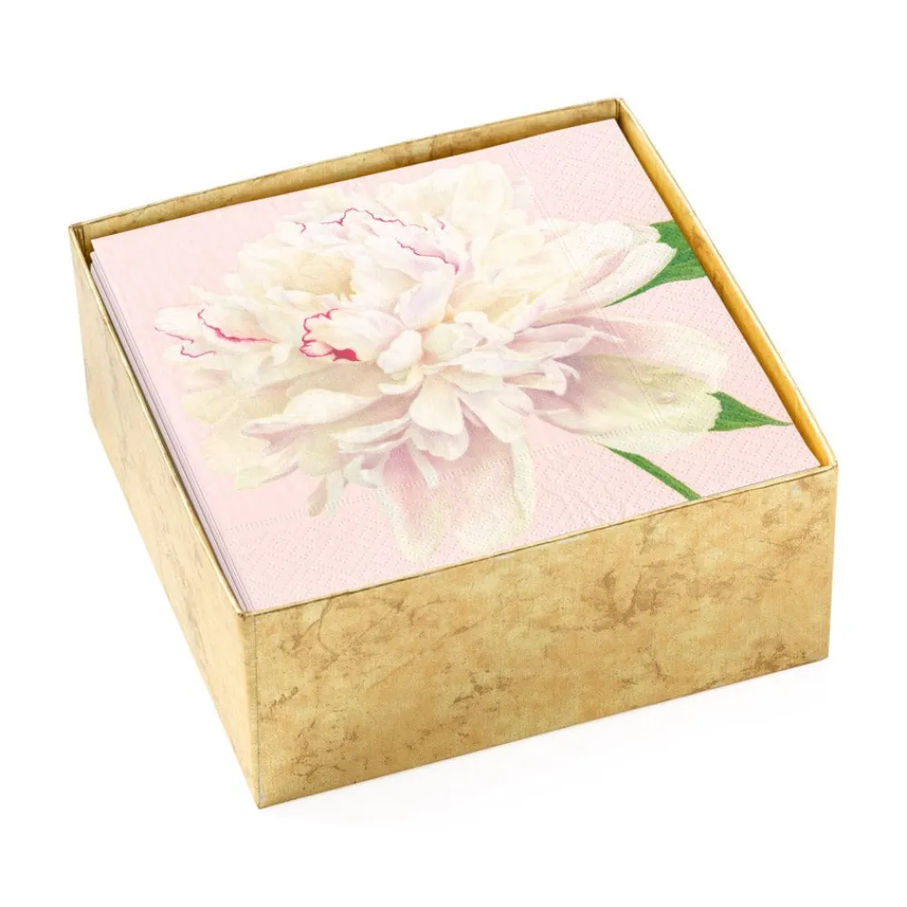 Caspari Boxed Cocktail Napkins|Duchess Peonies Boxed Paper Cocktail Napkins in Blush – 40 Per Box