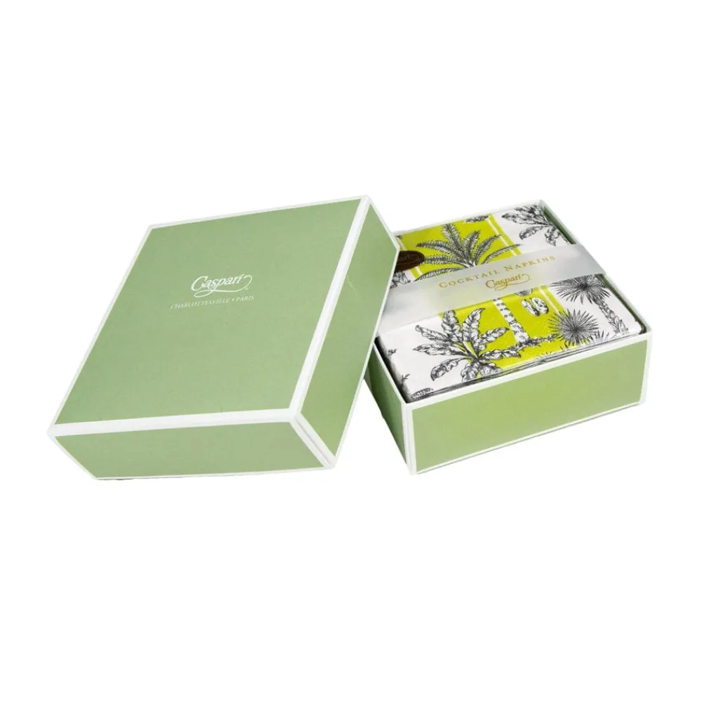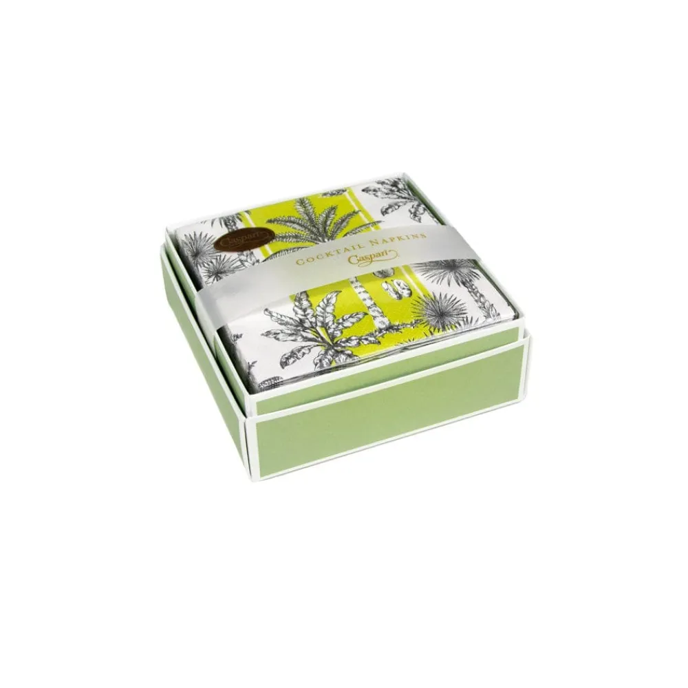Caspari Boxed Cocktail Napkins|Southern Palms Green & White Boxed Cocktail Napkins - 40 Per Box