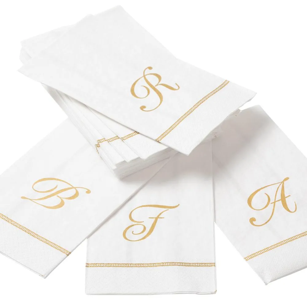 Caspari triple-ply napkins are both striking in design and durable in function. Thoughtfully designed to elevate any occasion, they feature artwork and designs from museums and artists around the world. Our initial design effortlessly adds a personal touch to your guest bath or table. Each is made of chlorine-free bleached triple-ply tissue and printed in Germany with nontoxic, water-based, food-safe ink. They are FSC-certified and made using environmentally-conscious raw materials, which ensures they are both biodegradable and compostable. Our napkins bring eco-friendly style and convenience to your tabletop. 15 initial napkins per package.