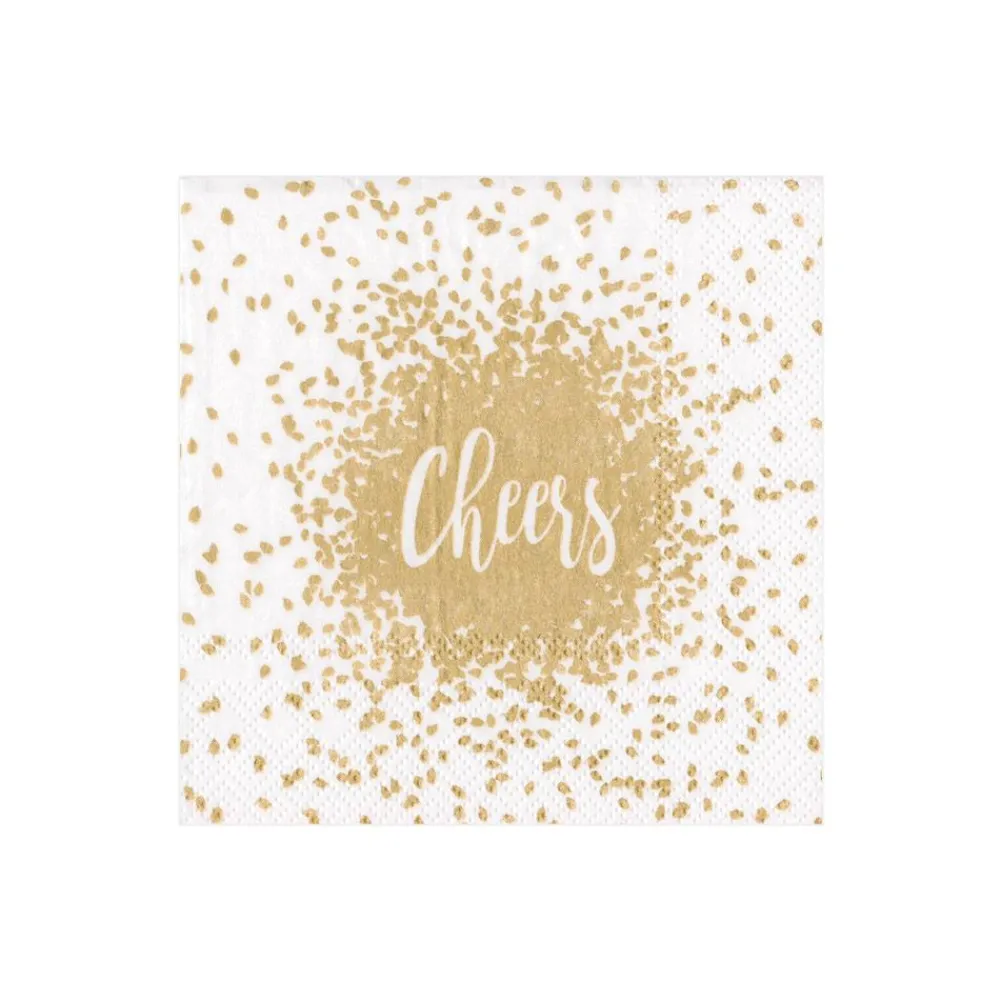 Caspari Christmas Napkins|Cocktail Party|Cheers Paper Cocktail Napkins in Gold – 20 Per Package