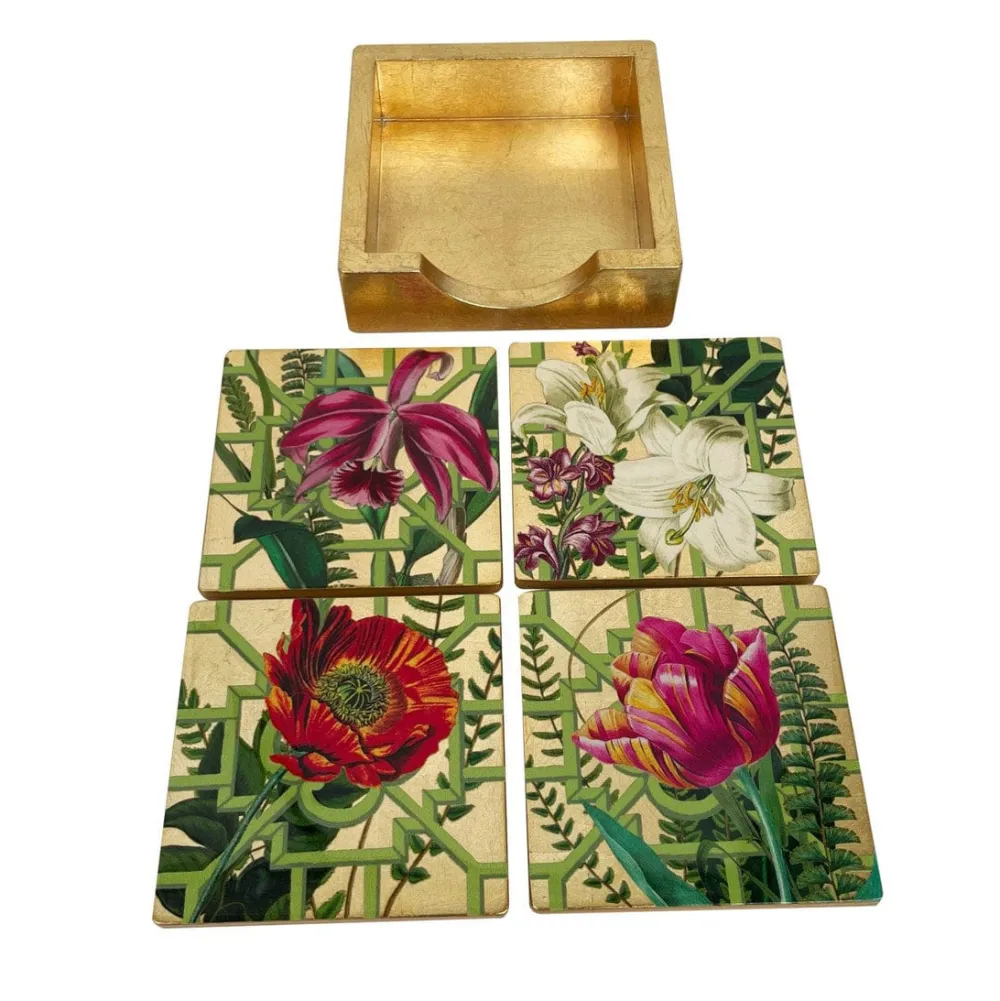 - Set of 4 Coasters in Holder