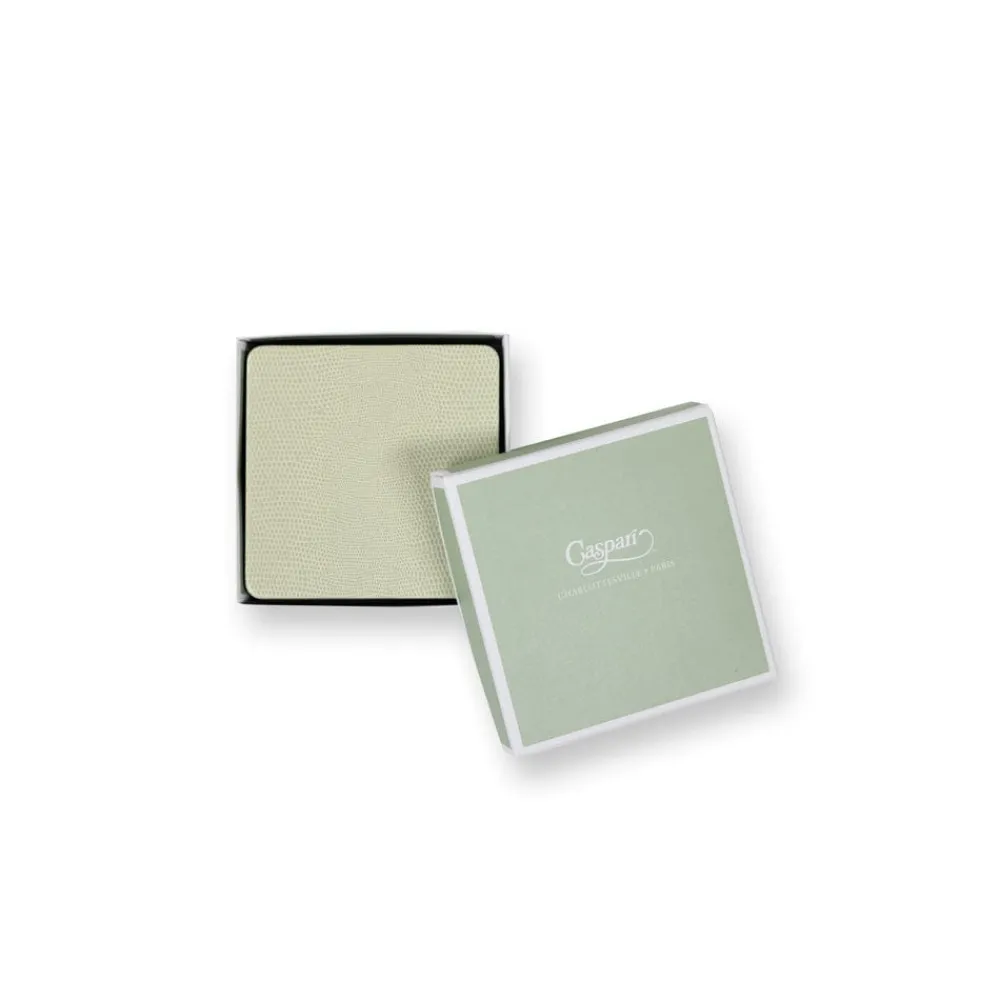 Casparis felt-backed Lizard Coasters are handcrafted in our own bindery in the United States and are a part of the Gallery Collection, which incorporates the same artisan skills used in centuries past to create beautiful and high-quality handmade goods. The top surfaces of our coasters are made from a durable, embossed faux leather with a felt backing. The sets are a lovely addition to any tabletop and keep your surfaces well protected. Eight coasters arrive in a eco-friendly box, which is perfect for gifting.