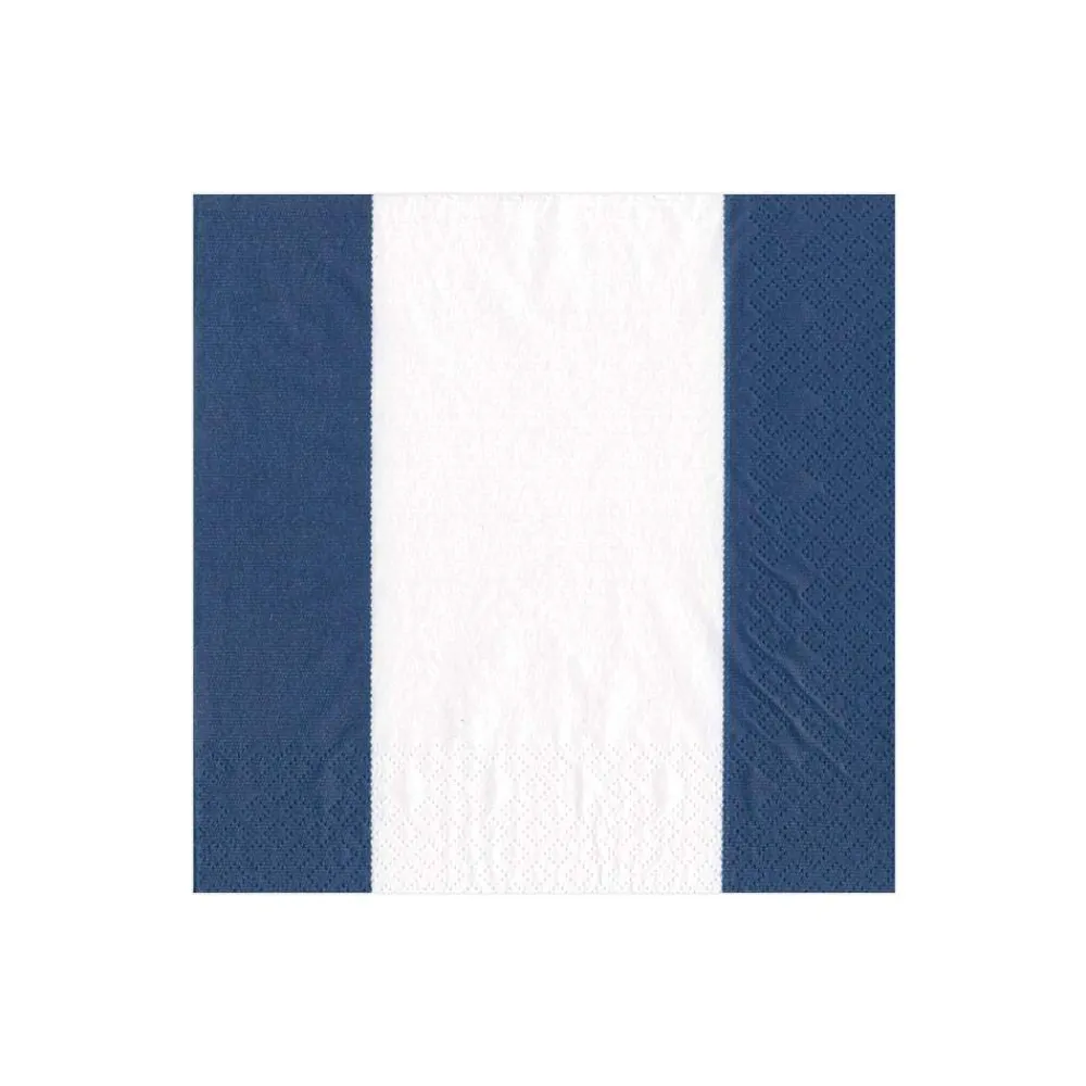 Caspari Cocktail Party|Birthday|Bandol Stripe Paper Cocktail Napkins in Navy – 20 Per Package