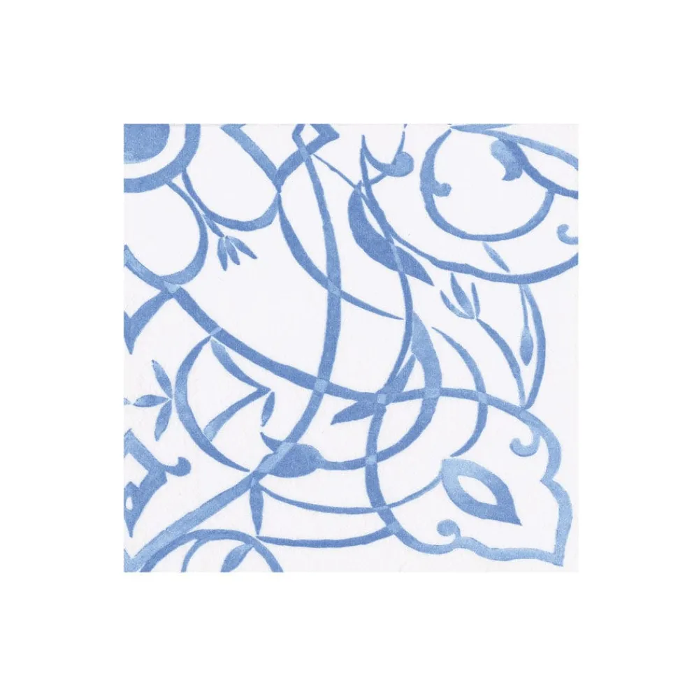 Caspari Hanukkah|Boxed Cocktail Napkins|Algarve Ceramic Blue Paper Linen Boxed Cocktail Napkins - 30 Per Package