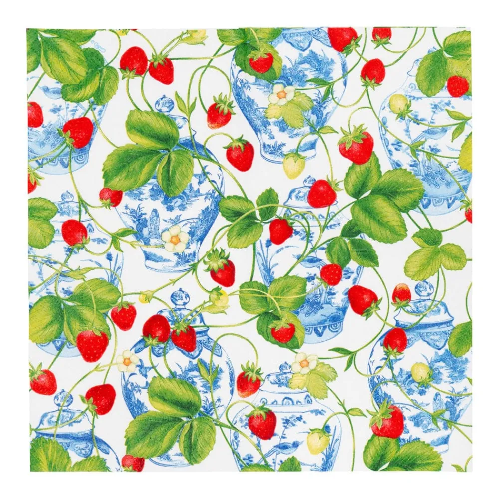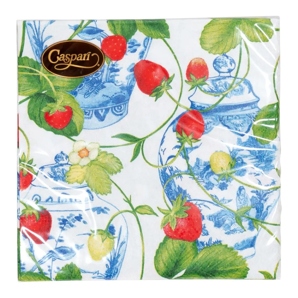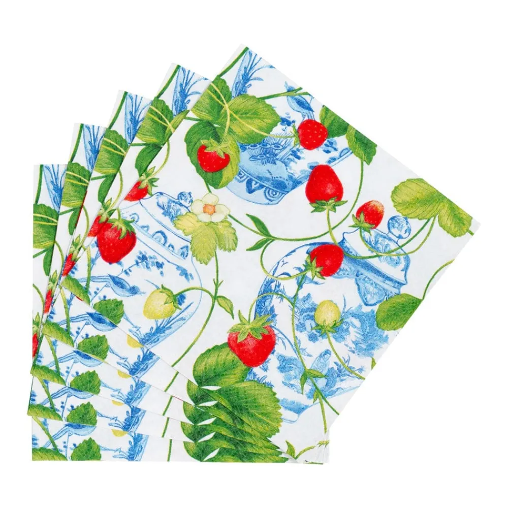 Caspari Memorial Day|Paper Cocktail Napkins|Strawberries And Cream Cocktail Napkins – 20 Per Package