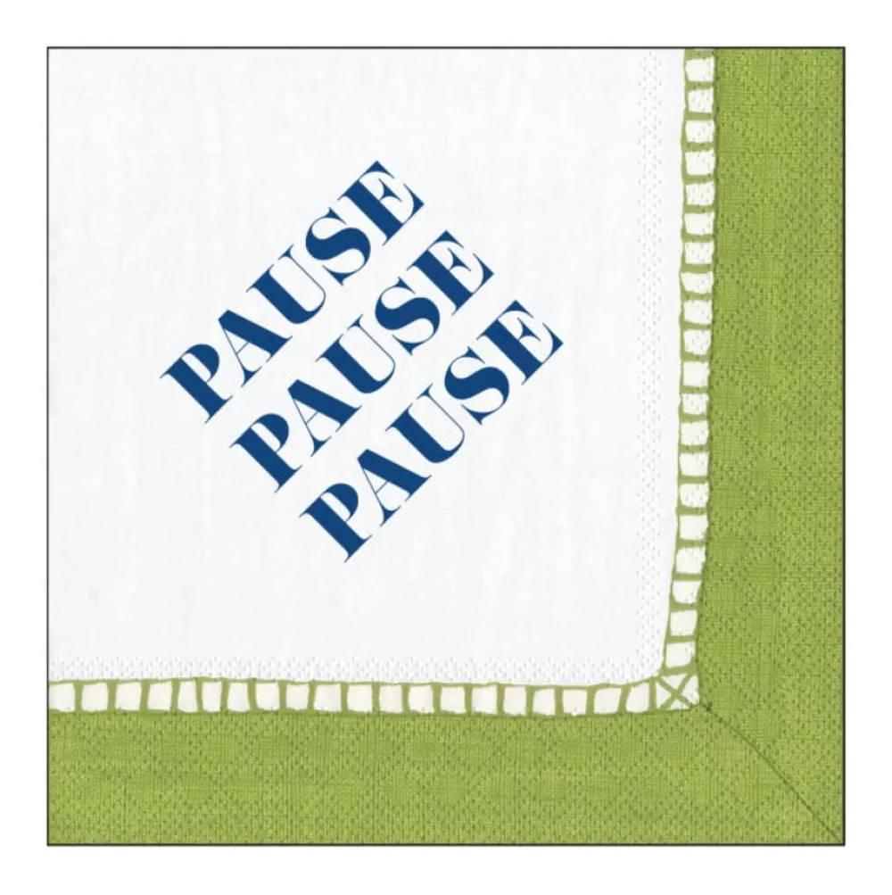 Caspari Paper Cocktail Napkins|Mahjong|Pause, Pause, Pause Paper Cocktail Napkins – Linen Border in Bright Green