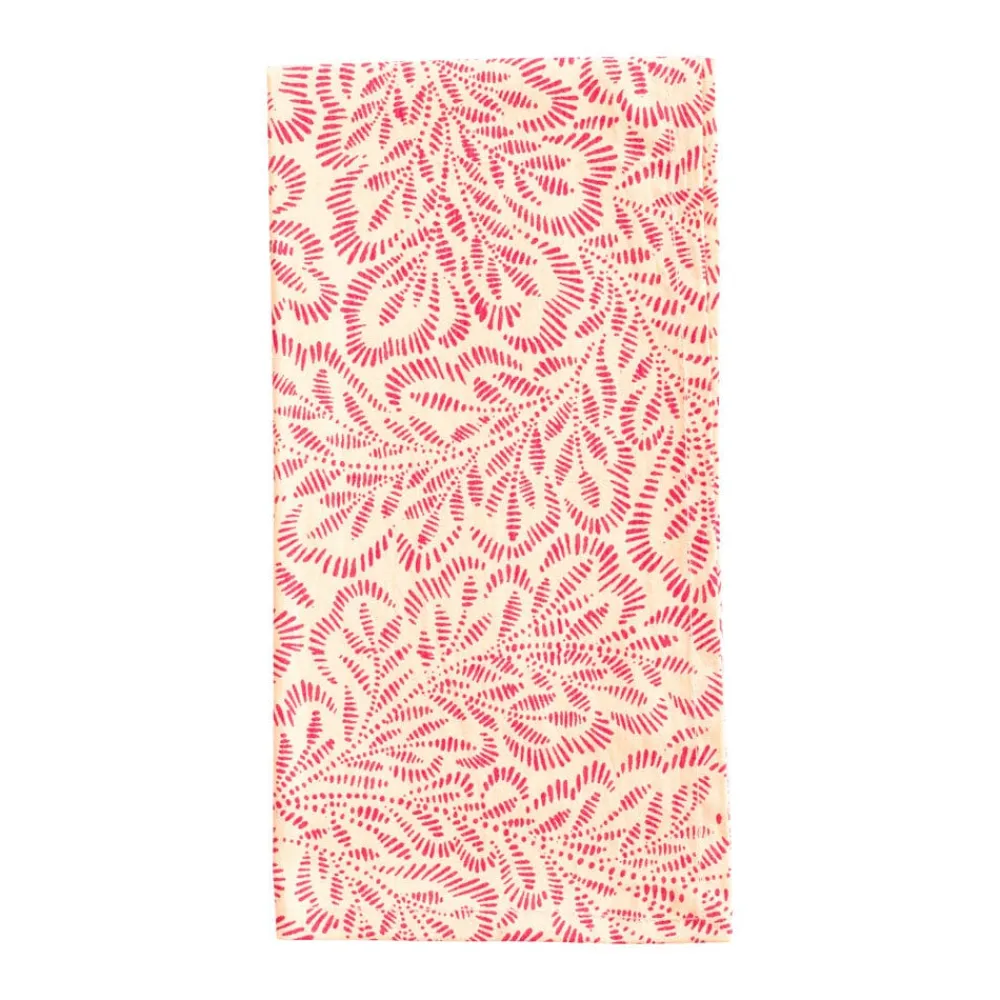 Caspari Summer Picnic|Easter|Block Print Leaves Cotton Dinner Napkins in Coral & Fuchsia – Set of 4