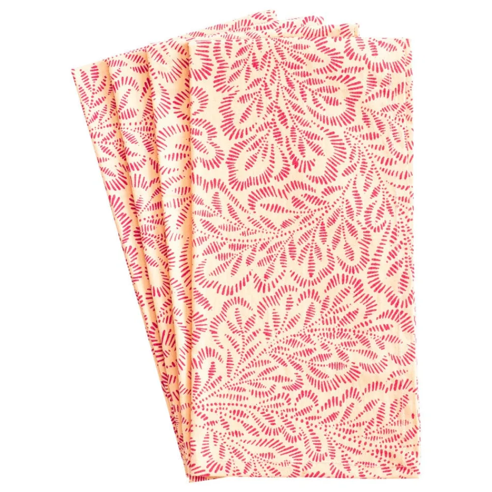 Caspari Summer Picnic|Easter|Block Print Leaves Cotton Dinner Napkins in Coral & Fuchsia - Set of 4