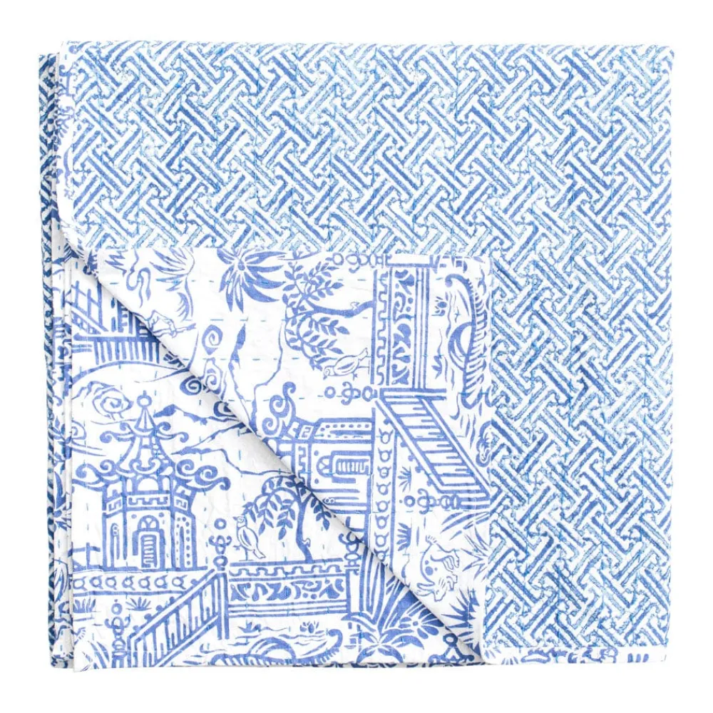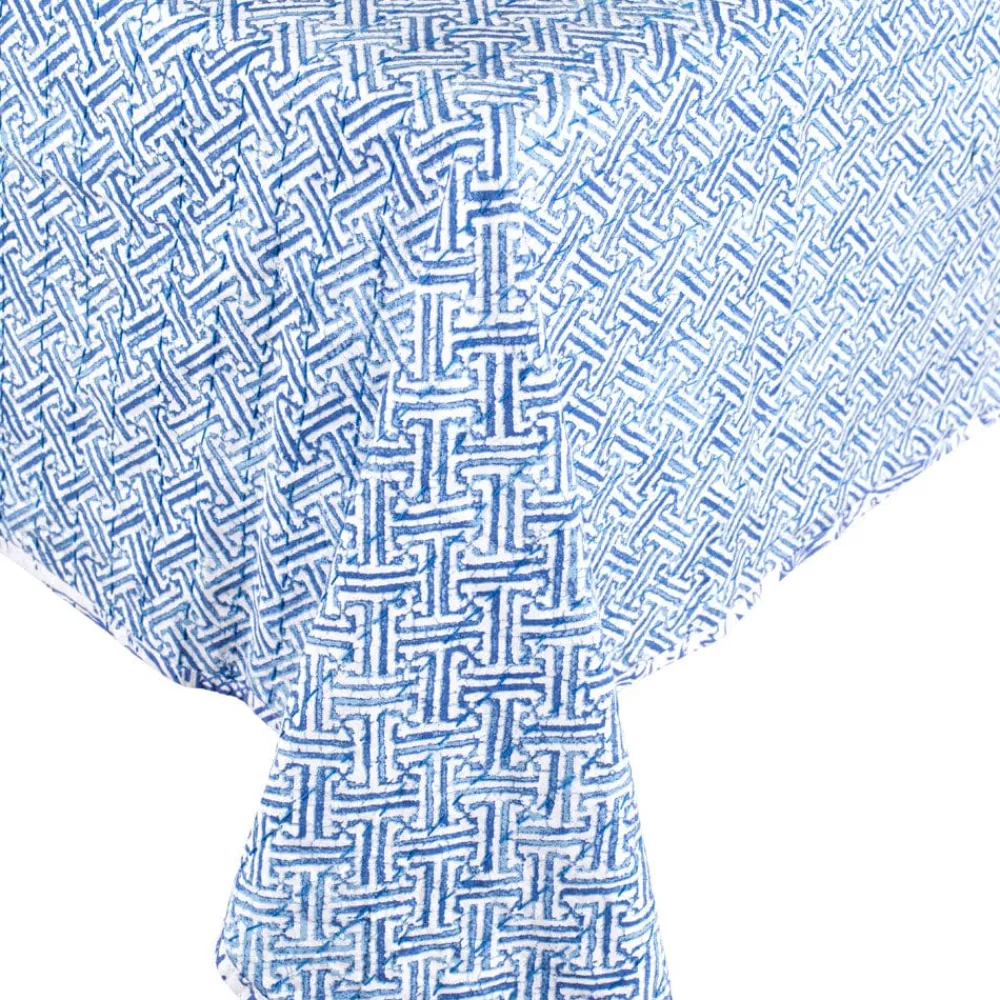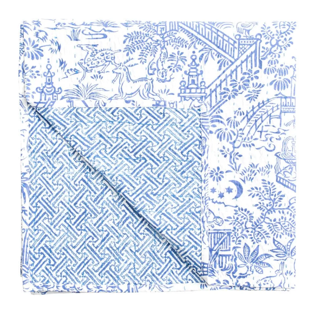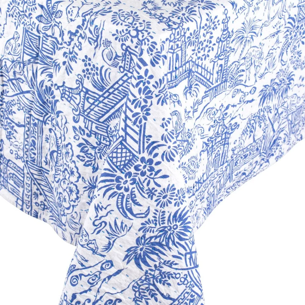 Perfect for the dining room, veranda or picnics on the lawn, our reversible hand printed cotton tablecovers feature rows of kantha hand stitching details. Pair with coordinating Caspari textile or paper napkins to complete the look. Machine wash cold. Tumble dry low.