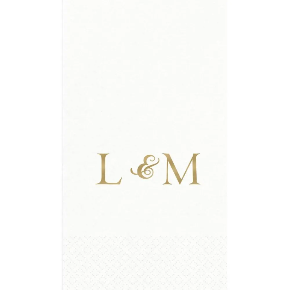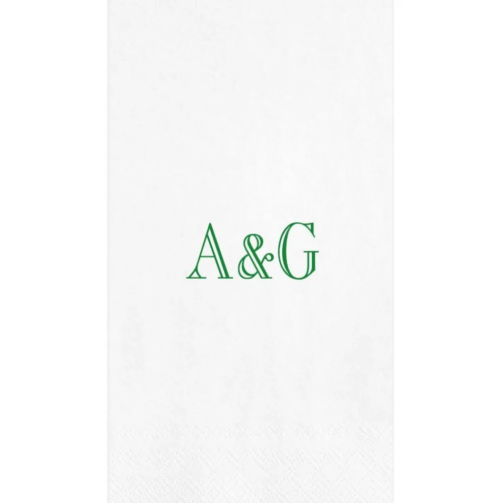 - Personalized guest towel napkins measure 4.25″ x 7.75″ and are sold in bundles of 100, with a minimum purchase of 100+ personalized napkins.