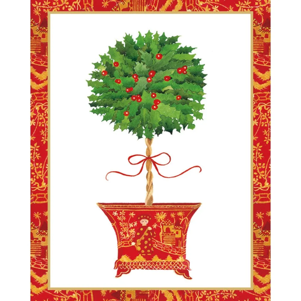 Personalization by Caspari Personalized Holiday Cards|Personalized Christmas Cards|Holly Topiary in Red Pot Personalized Christmas Cards