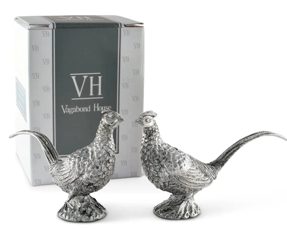 Enhance your dining table with the elegant Pewter Pheasants Salt & Pepper Set, expertly crafted by renowned wildlife artist Helen Richard. This finely detailed set features a high-quality pewter finish, capturing every intricate feather and beak with precision. Its compact dimensions of 1″W x 4″L x 2″H make it a perfect decorative accent that also serves a practical purpose. Ideal for adding a touch of sophistication to your meals or as a thoughtful gift for bird enthusiasts who appreciate refined style.