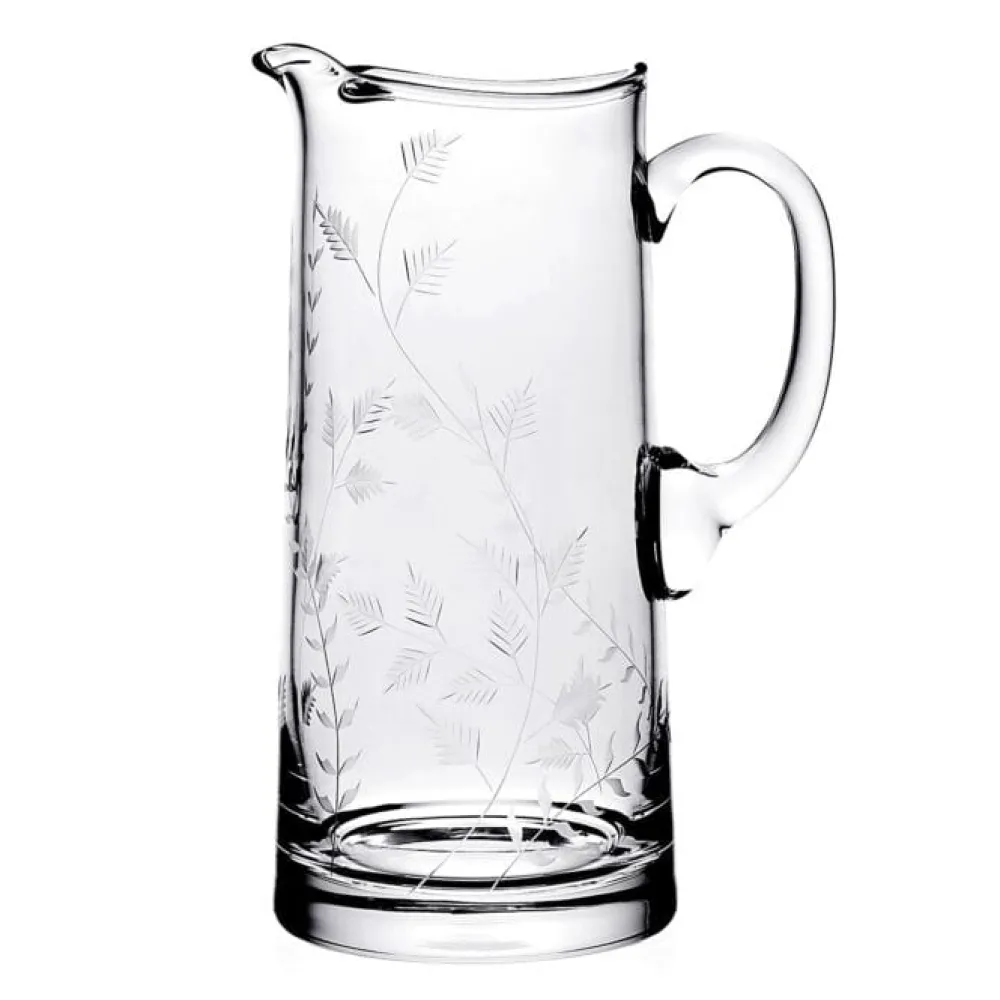 This elegant pitcher showcases a refined shape highlighted by intricate fern-cut detailing. Made from exquisite handmade glass, it adds a touch of sophistication to any bar or dining setting. Ideal for serving drinks, water, or even displaying fresh flowers, this piece is a stylish addition that enhances your collection with timeless charm.