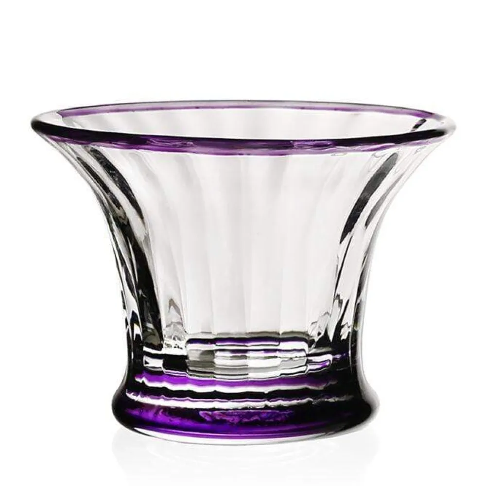 The Siena Mini Vase / Sorbet in Amethyst from William Yeoward is part of the expanded handcrafted summer Studio collection. These Siena pieces provide unique vases with a colorful rim that can be mixed and matched on any tabletop. Each piece is handblown by William Yeoward artisans so no two pieces will be exactly alike. Mini-Vases make beautiful flower arrangements, but are equally at home on a tabletop used for sorbet or ice cream. William Yeoward’s balance of traditional quality and modern style has earned the London company global renown as well as a Royal Warrant from the Prince of Wales.